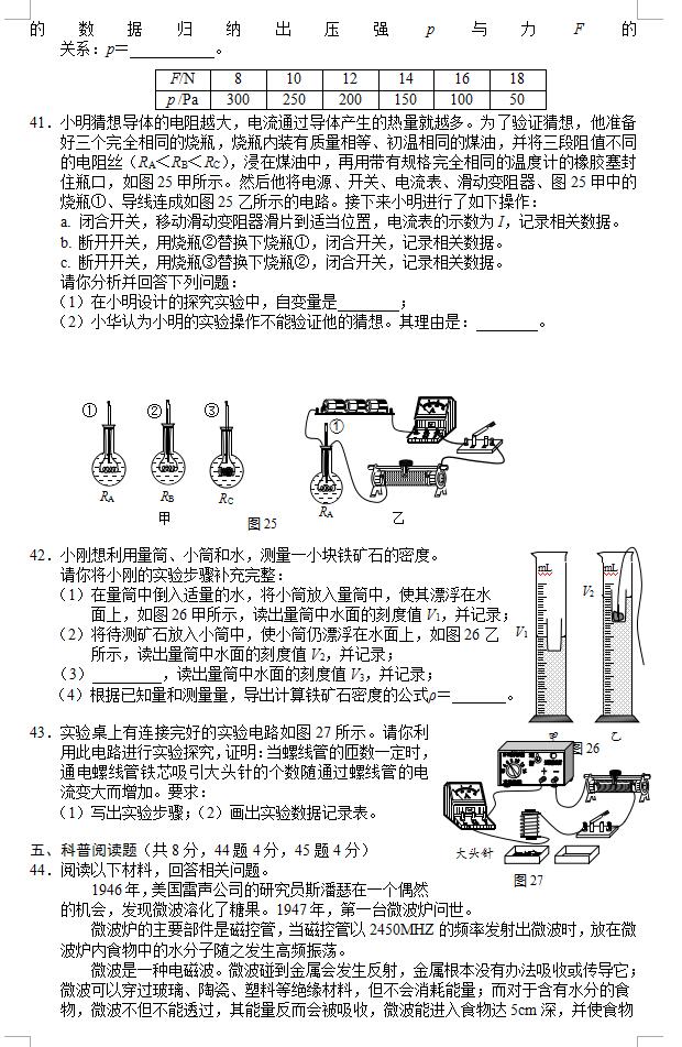 2018北京西城中学初三二模物理试题(图片版)(6)