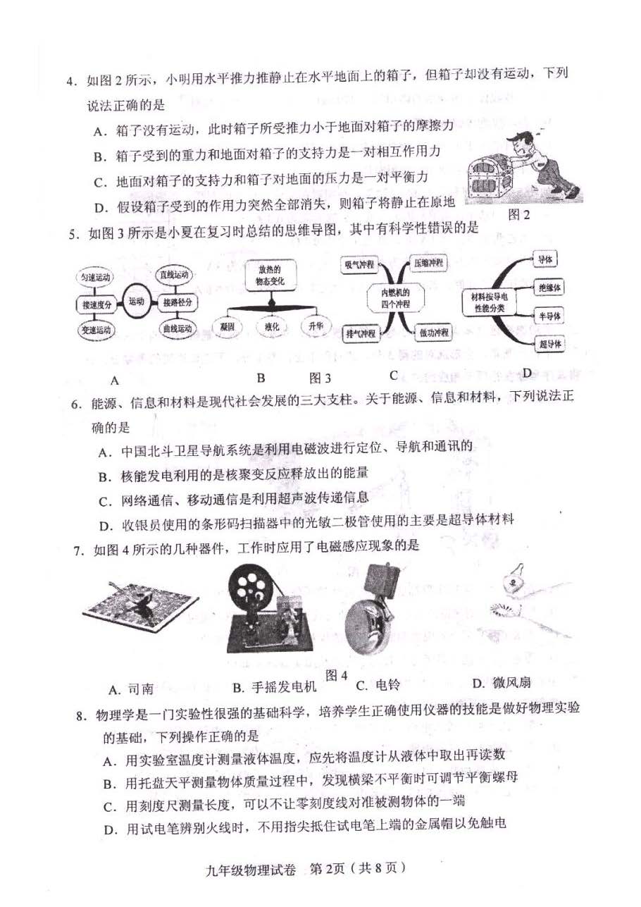 2018天津和平九年级物理结课质量检测物理试题(图片版)(2)