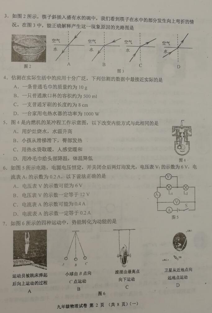 2018天津河西初中一模物理试题(图片版)(2)