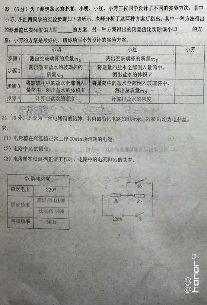 2018天津西青初中学业考试调查(一)物理试题(图片版)(7)
