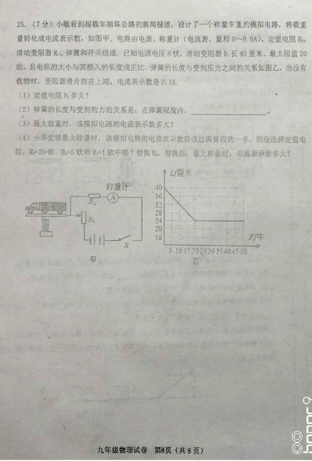 2018天津西青初中学业考试调查(一)物理试题(图片版)(8)