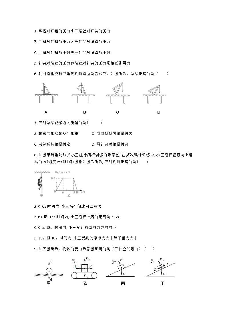 2018天津红桥九年级结课质量检测物理试题(图片版)(2)