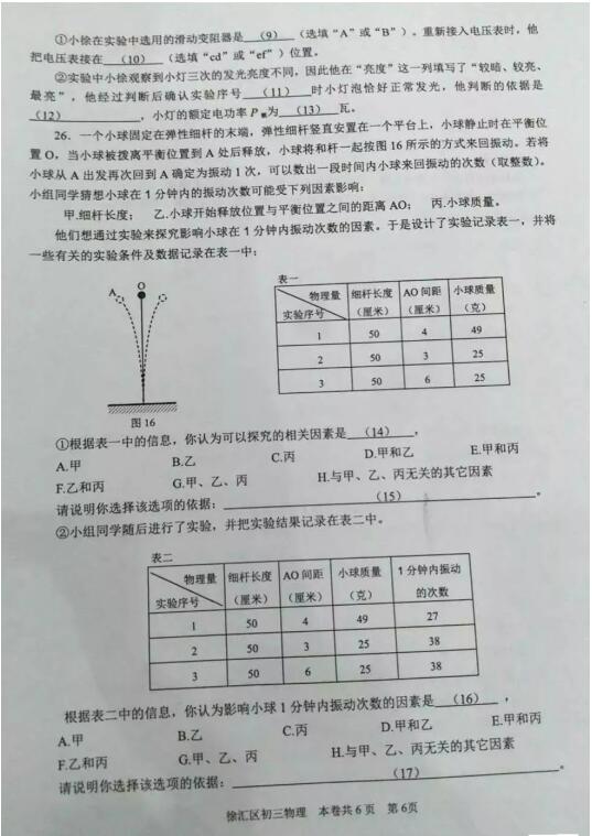 2018上海徐汇九年级二模物理试题(图片版)(6)