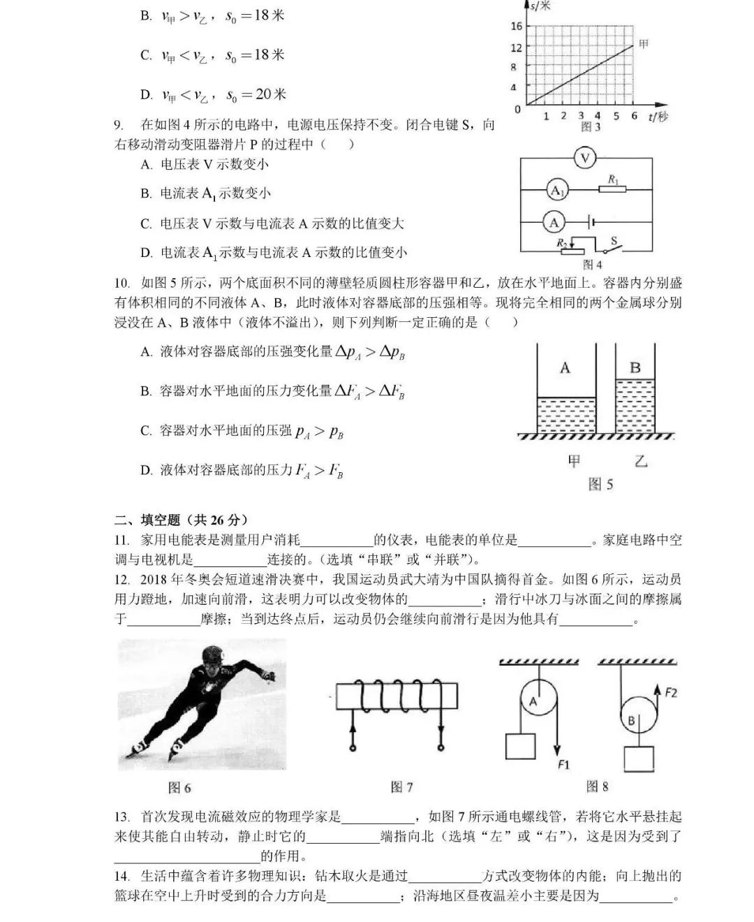 2018上海杨浦九年级二模物理试题(图片版)(2)