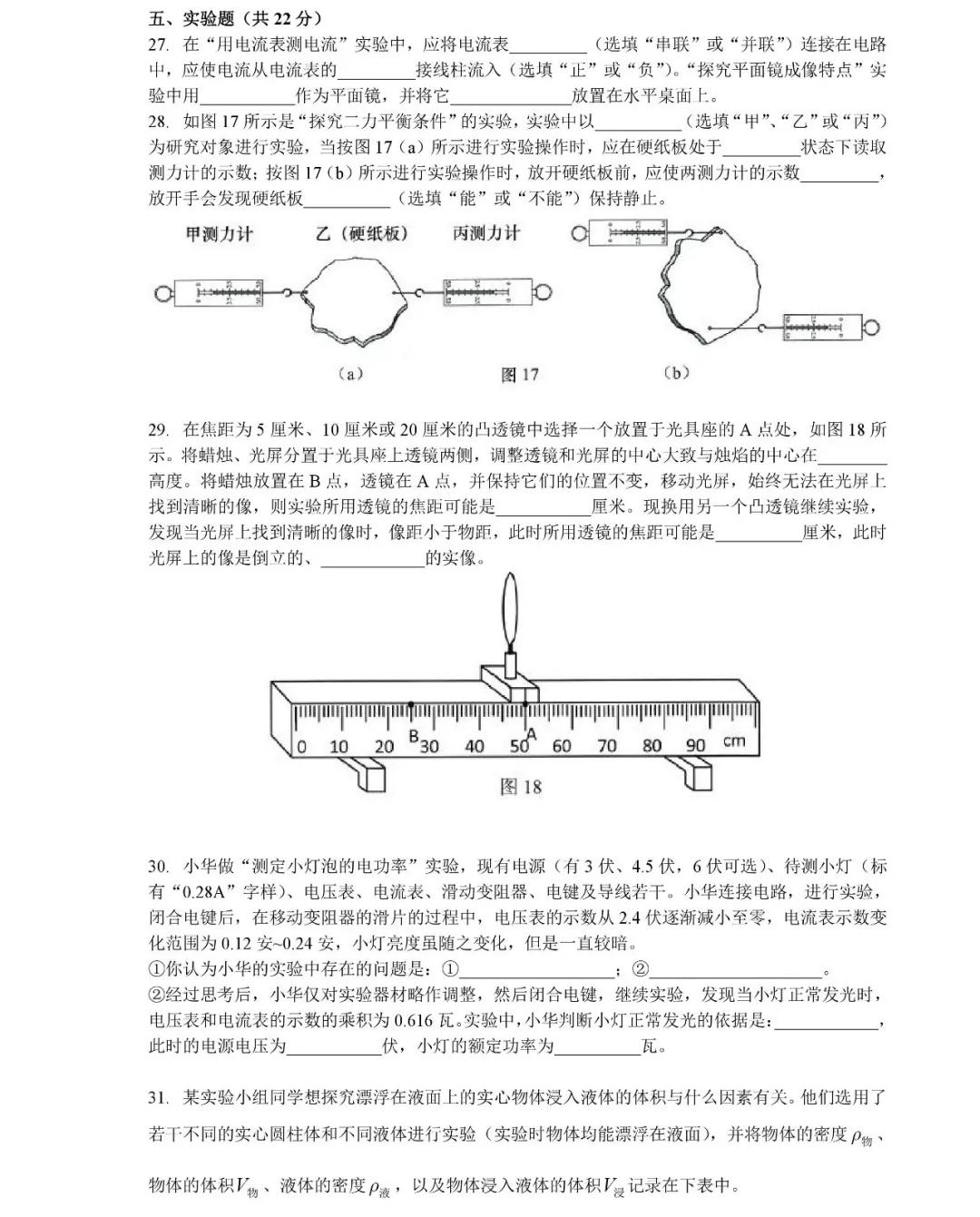 2018上海杨浦九年级二模物理试题(图片版)(6)