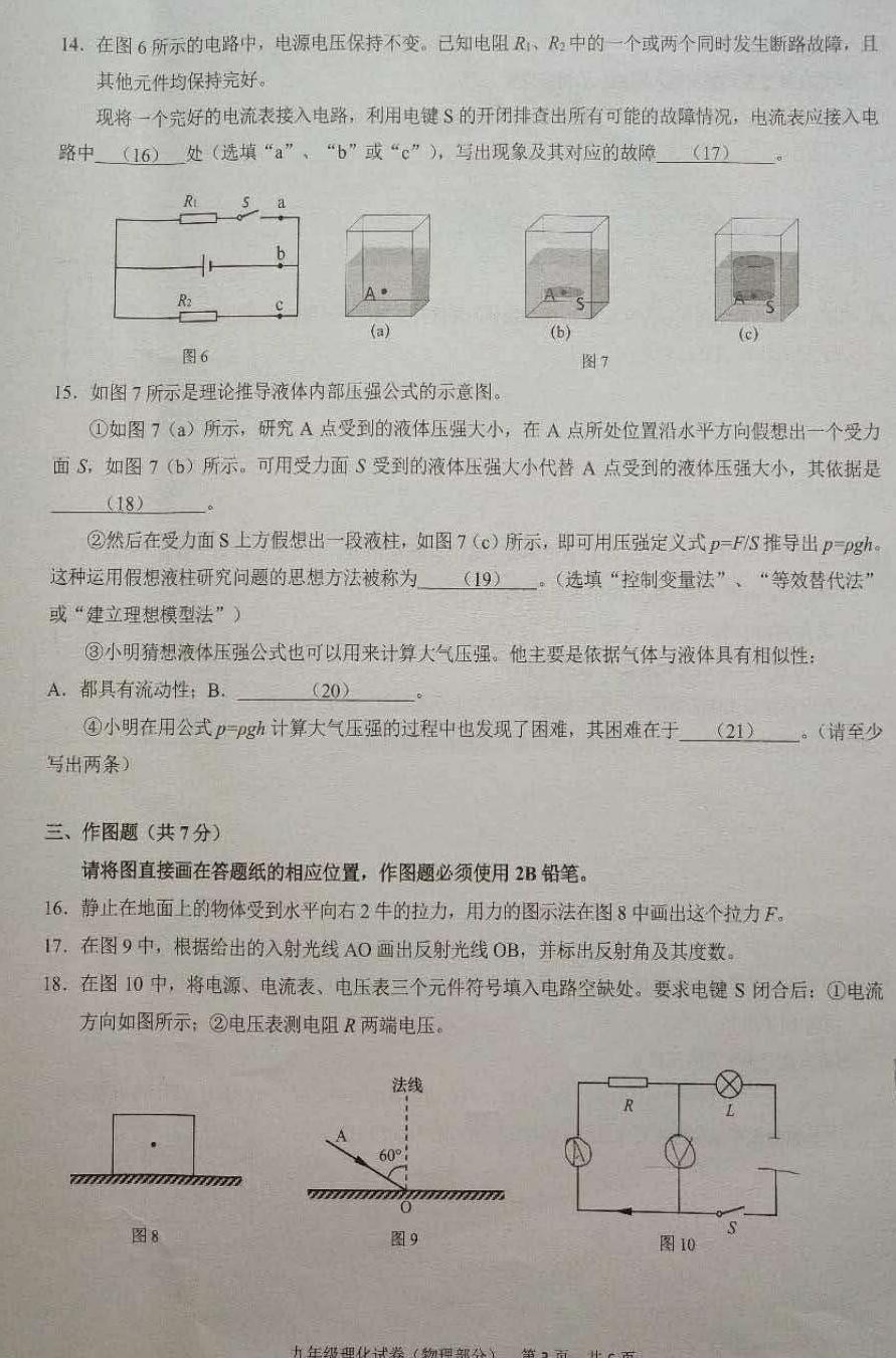 2018上海黄浦九年级4月模拟考试物理试题(图片版)(3)