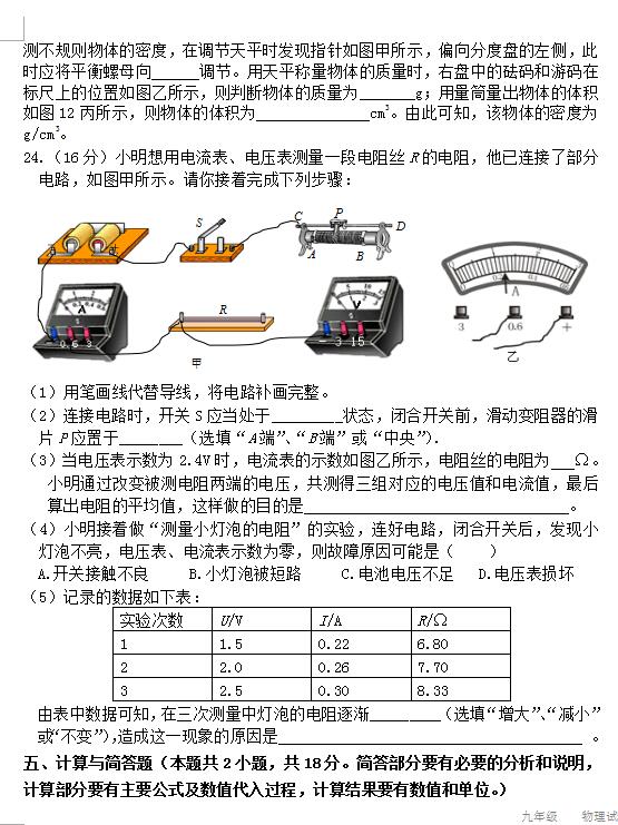 2018重庆南开中学九年级下物理中考模拟测试卷(图片版)(3)