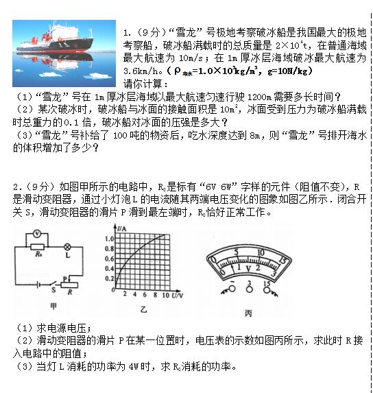 2018重庆南开中学九年级下物理中考模拟测试卷(图片版)(4)