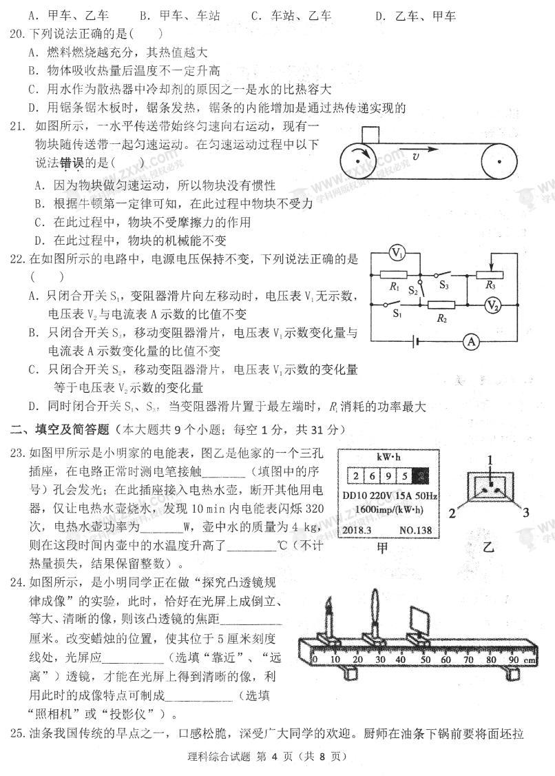 2018河北宁晋东城实验学校九年级模拟考试物理试题(图片版)(2)