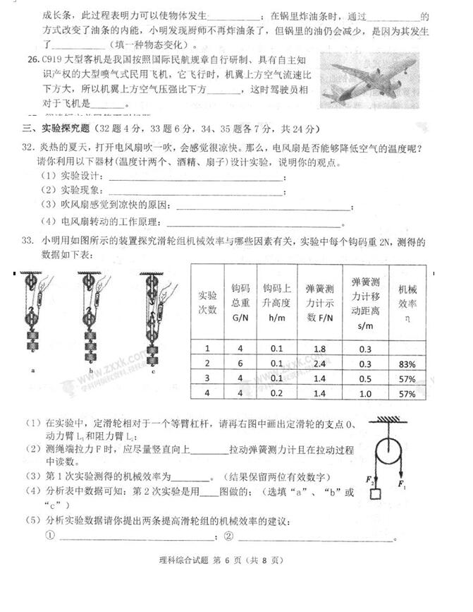 2018河北宁晋东城实验学校九年级模拟考试物理试题(图片版)(3)