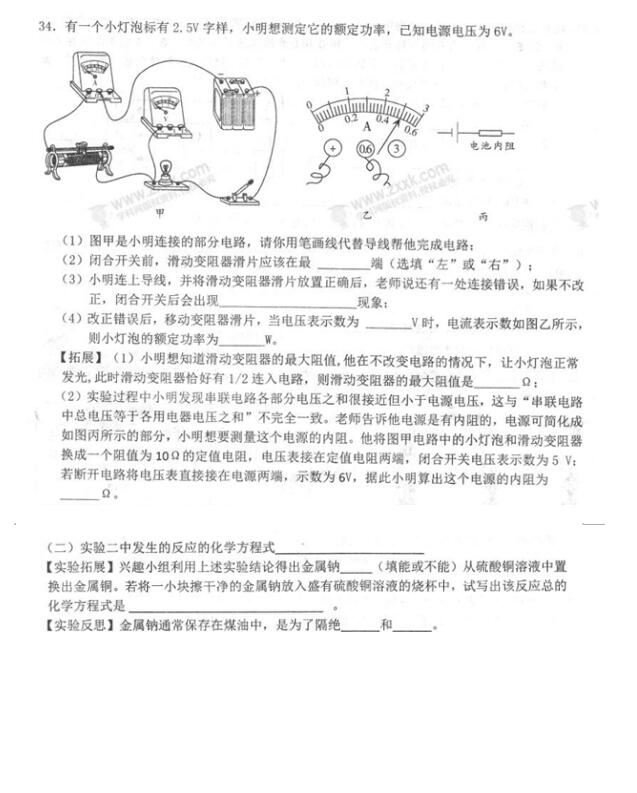 2018河北宁晋东城实验学校九年级模拟考试物理试题(图片版)(4)