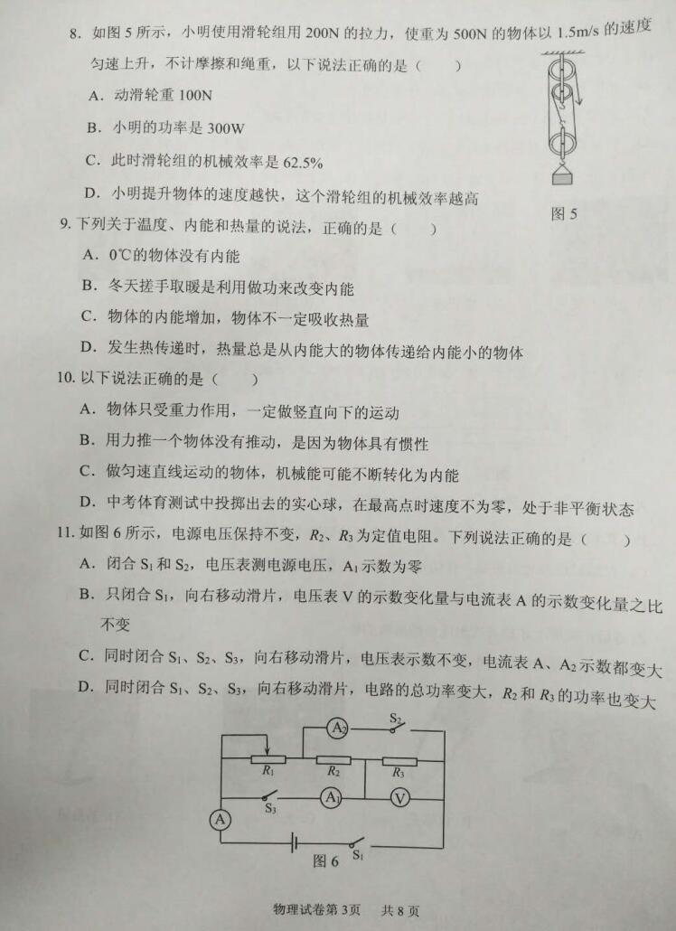 2018河北石家庄桥西中考物理模拟试卷(图片版)(3)