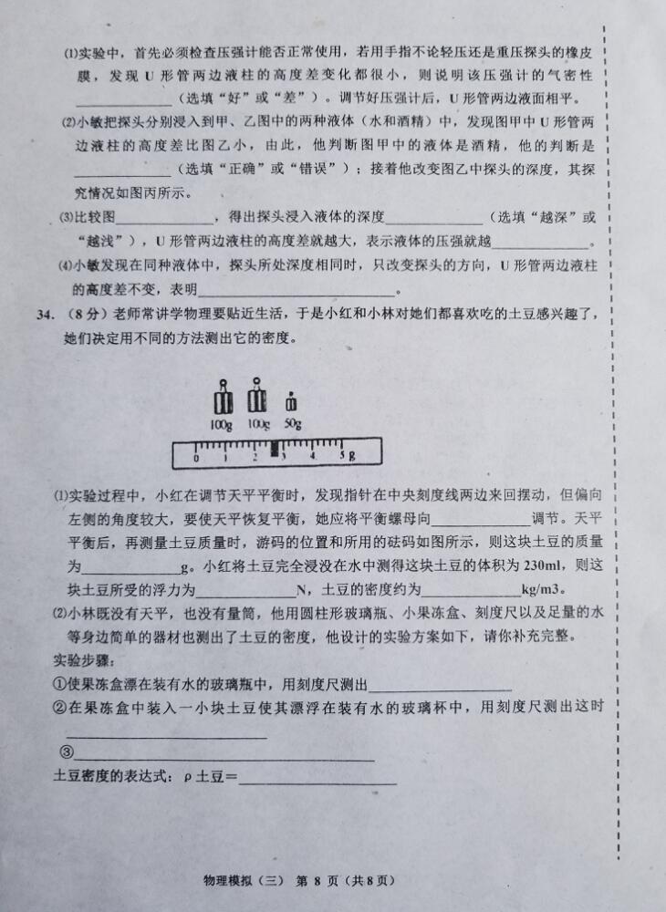 2018辽宁台安初中升学考试物理模拟试卷(三)(图片版)(8)