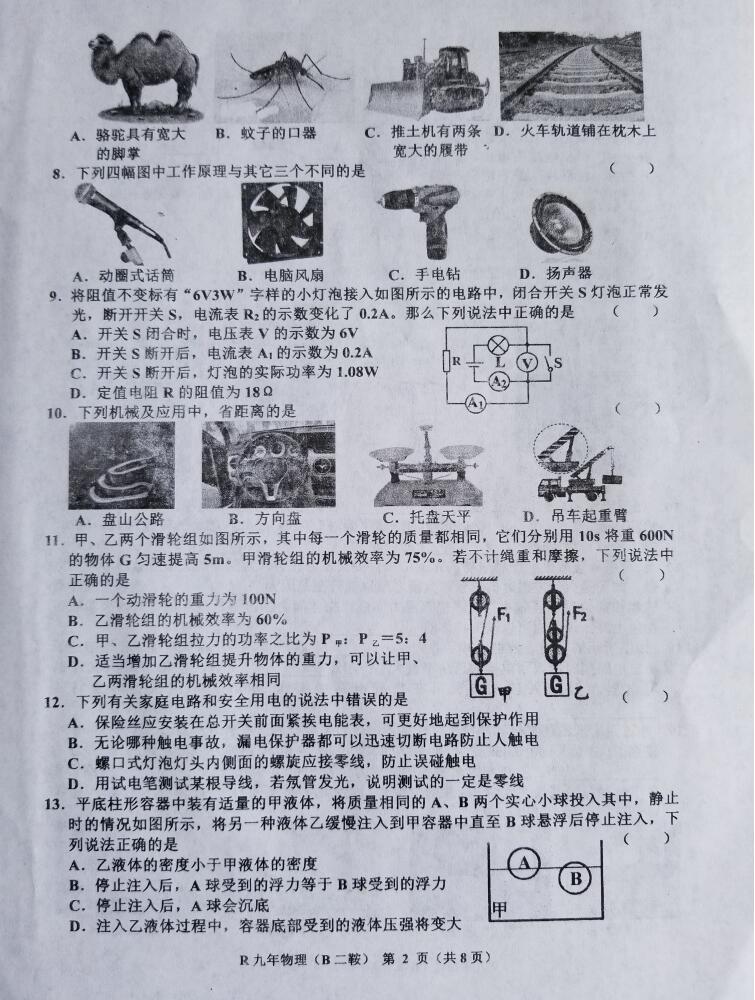 2018辽宁本溪初中毕业练习(二)物理试卷(图片版)(2)