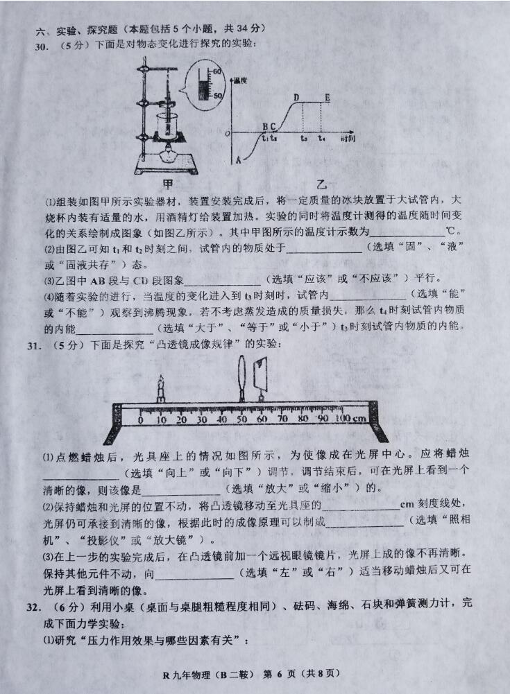 2018辽宁本溪初中毕业练习(二)物理试卷(图片版)(6)