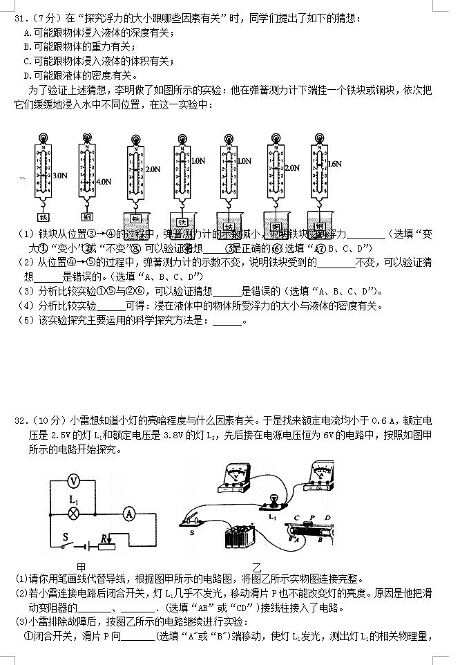 2018辽宁营口九年级中考模拟(一)物理试题(图片版)(7)