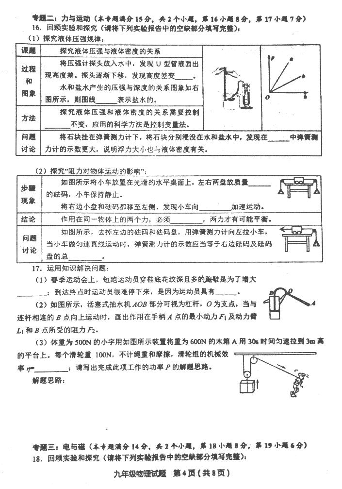 2018山东青岛西海岸中考三模物理试题(图片版)(4)