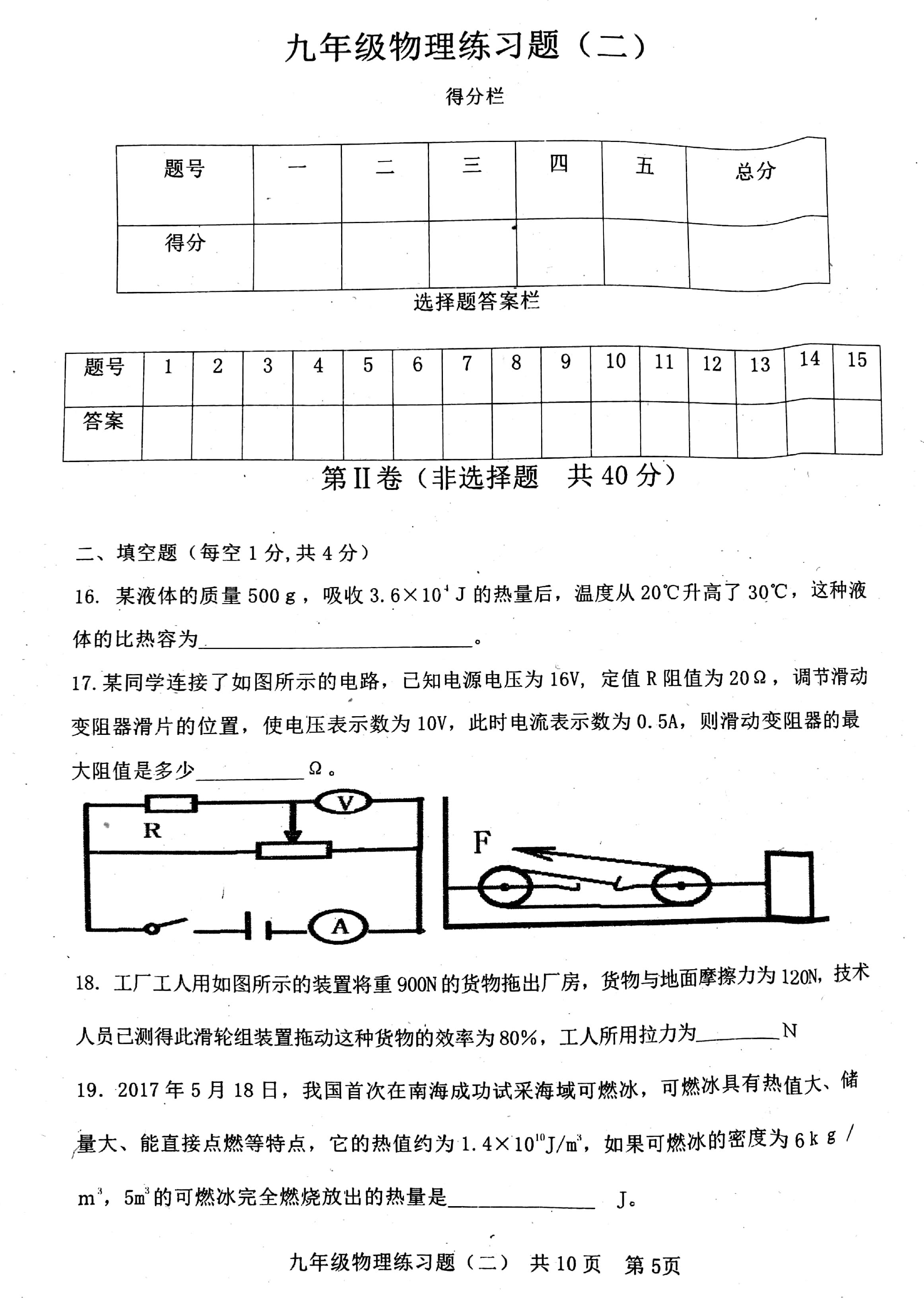 2018山东泰安岱岳九年级三模物理试题(图片版)(5)
