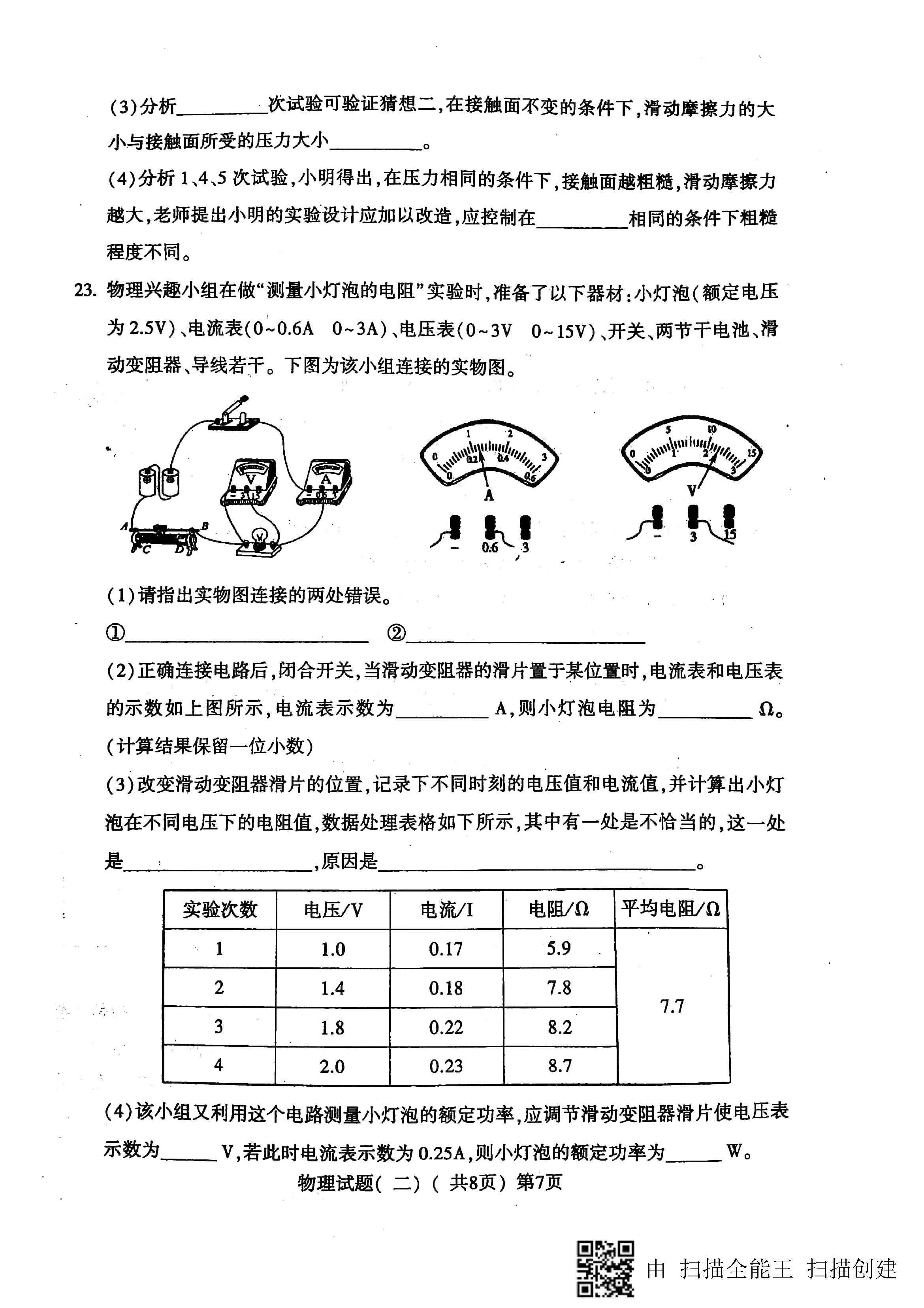 2018山东阳谷九年级二模物理试题(图片版)(6)