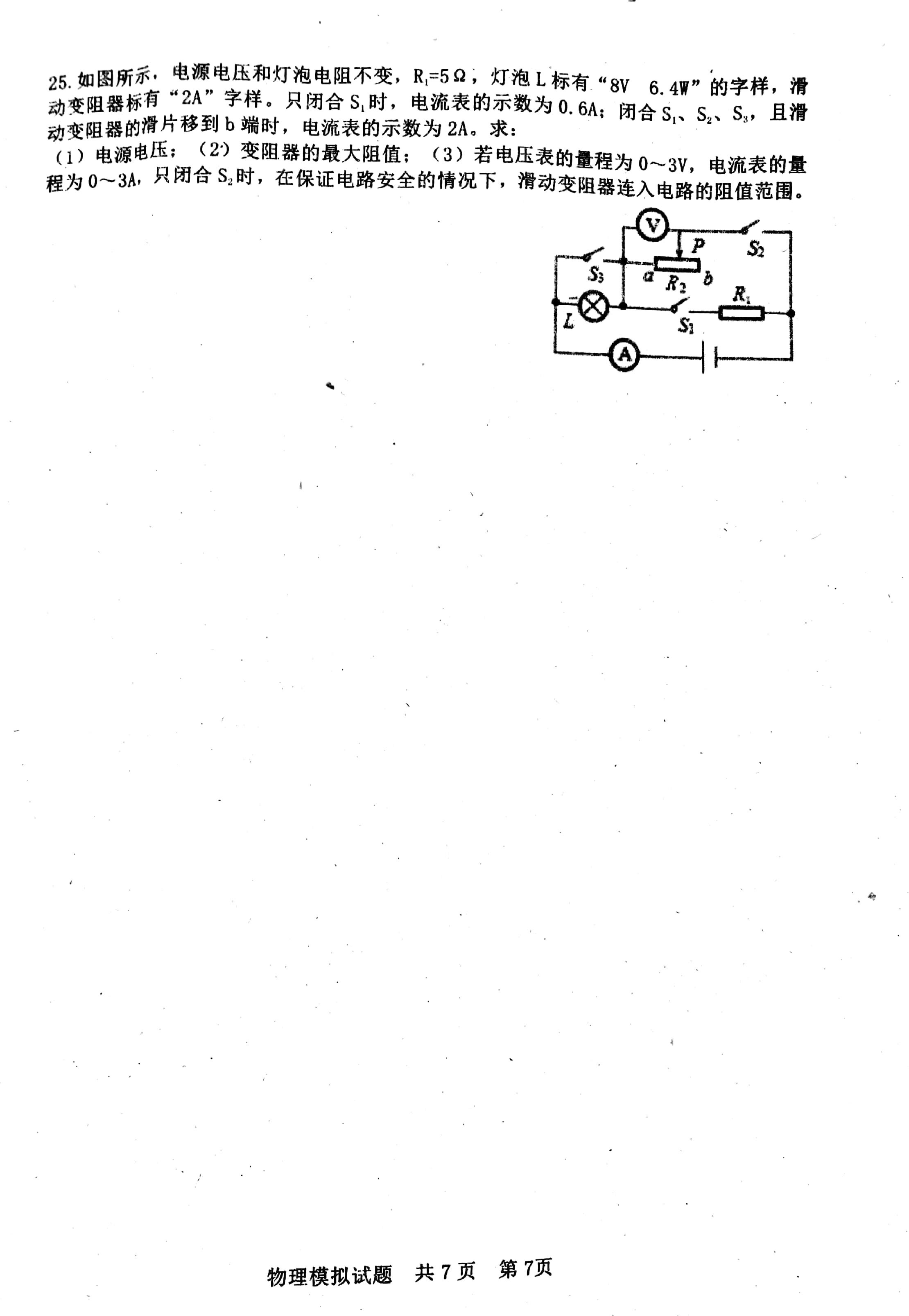 2018山东泰安初中学业考试物理模拟试题(图片版)(7)