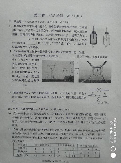 2018山东日照莒县二模物理试题(图片版)(4)
