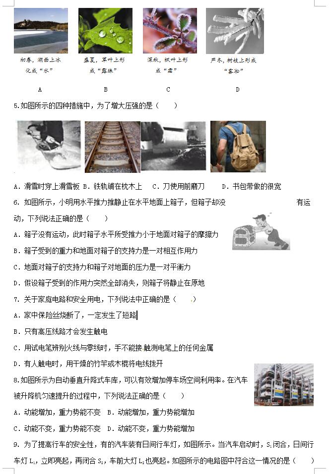 2018山东德州临邑洛北中学九年级下第二次练兵物理试题(图片版)(2)