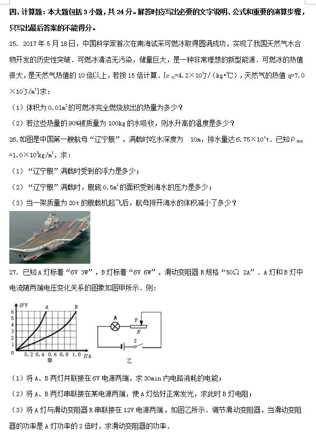2018山东德州临邑洛北中学九年级下第二次练兵物理试题(图片版)(7)