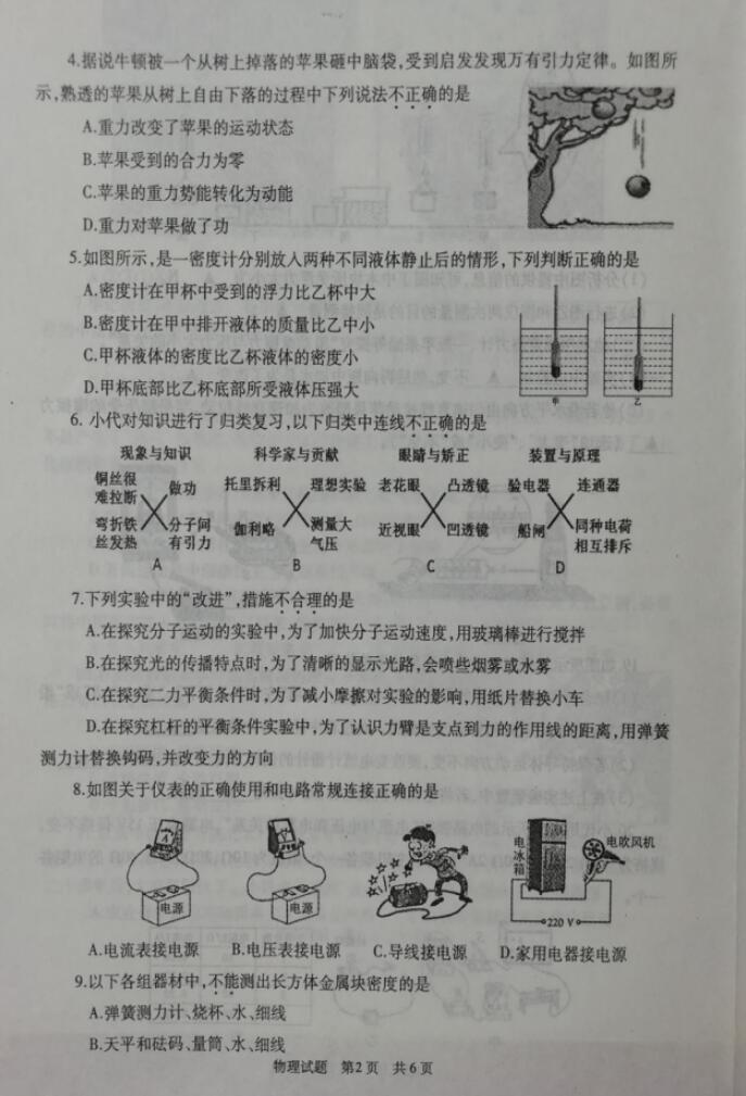 2018山东济宁鱼台九年级二模物理试题(图片版)(2)