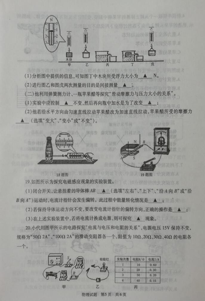 2018山东济宁鱼台九年级二模物理试题(图片版)(5)