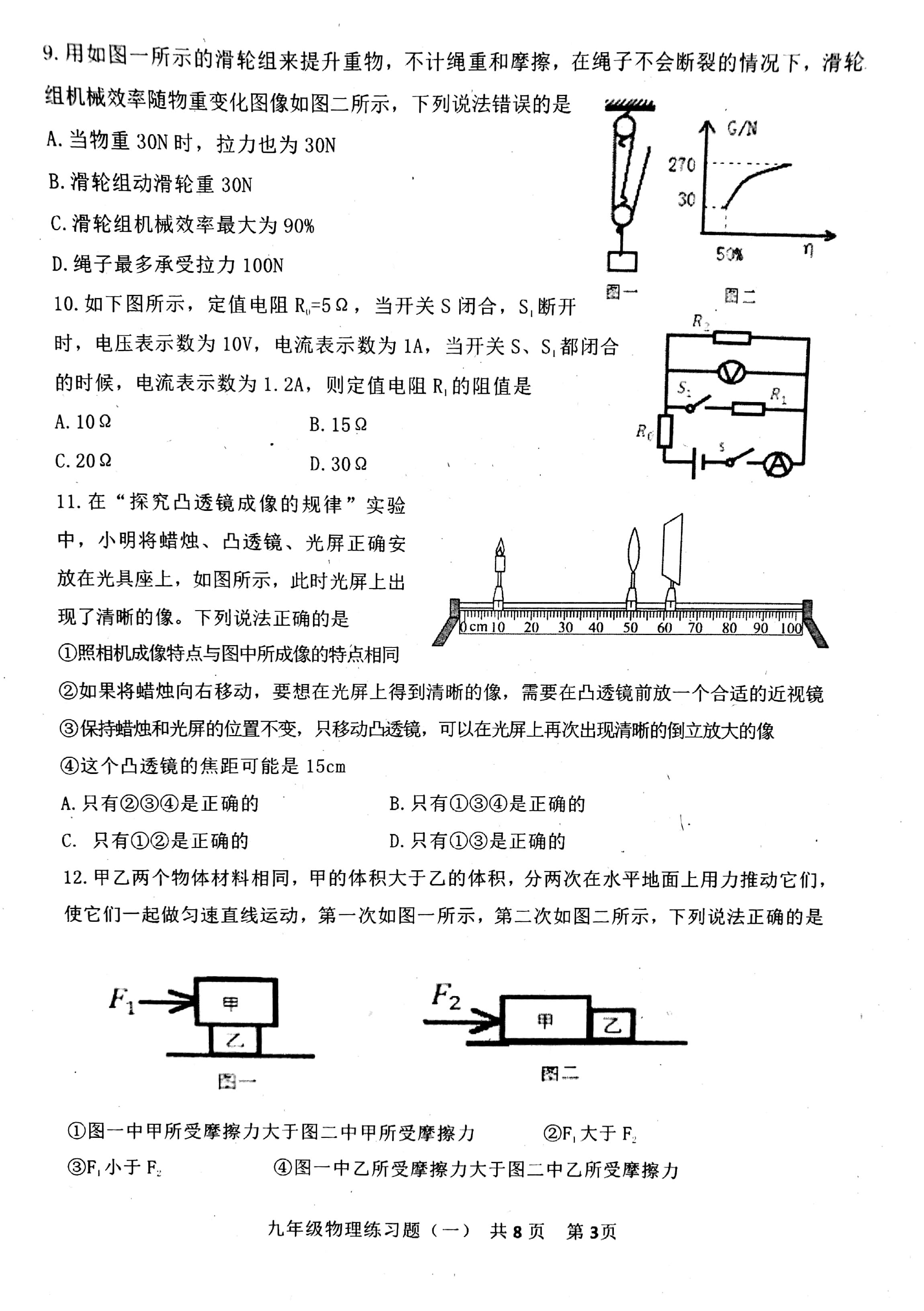 2018山东泰安岱岳九年级二模物理试题(图片版)(3)