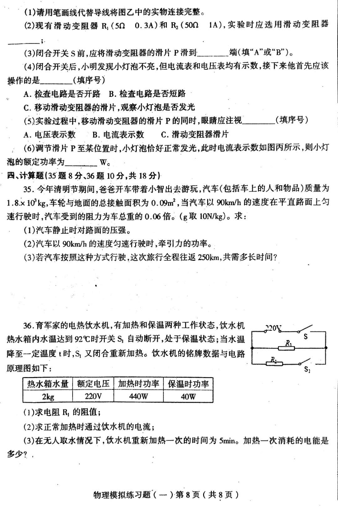 2018山东临沂郯城九年级中考模拟(一)物理试题(图片版)(8)