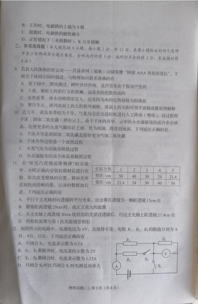 2018山东日照经济开发区中学九年级物理质检二(图片版)(2)