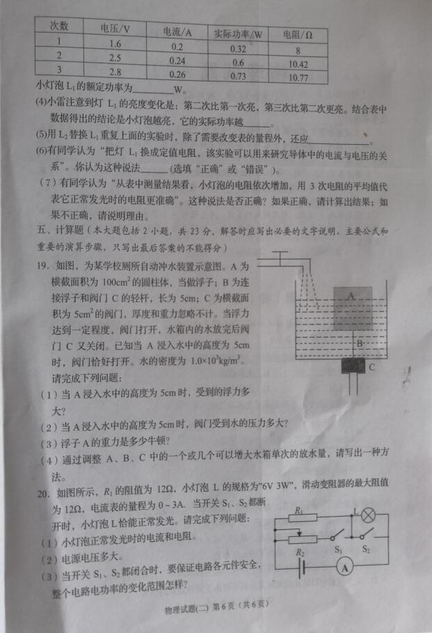2018山东日照经济开发区中学九年级物理质检二(图片版)(5)