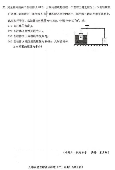 2018山东肥城中考模拟考试(二)物理试题(图片版)(8)