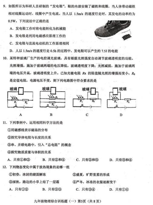 2018山东肥城中考模拟考试(一)物理试题(图片版)(3)