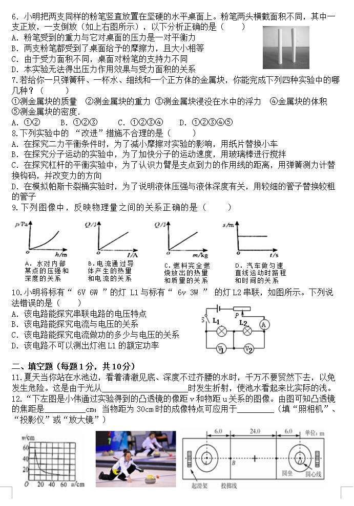2018山东邹城重点中学物理中考模拟试题(图片版)(2)