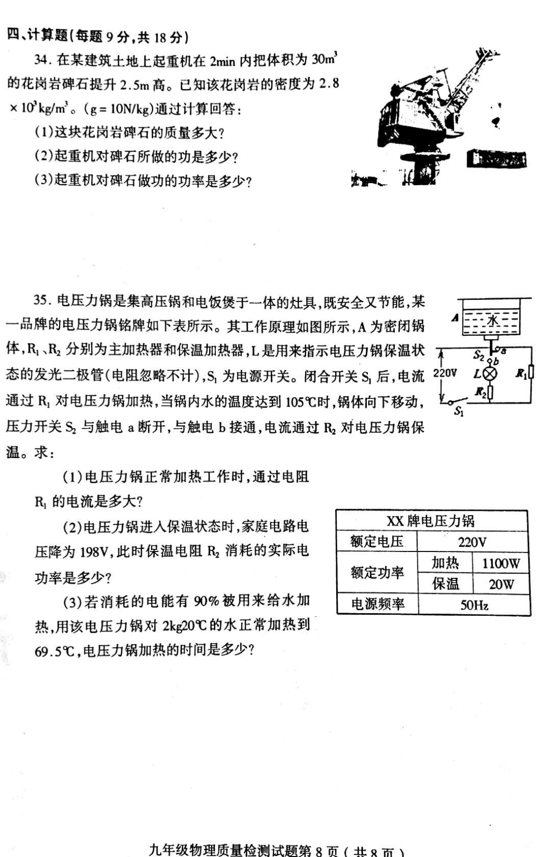 2018山东临沂郯城九年级一轮验收物理试卷(图片版)(8)