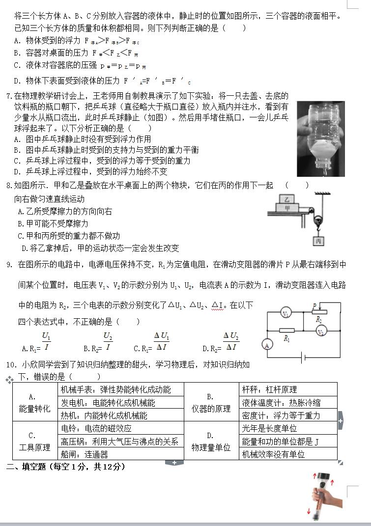 2018山东邹城中考物理模拟试题(三)(图片版)(2)