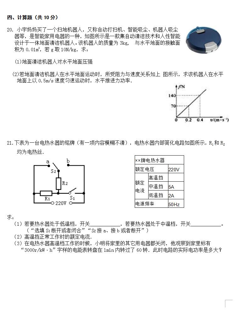 2018山东邹城中考物理模拟试题(三)(图片版)(6)