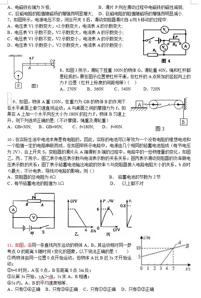 2018山东泰安岱岳满庄一中中考物理模拟试题(二)(图片版)(2)