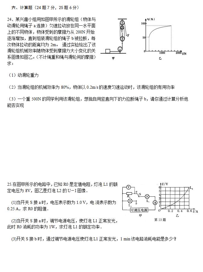 2018山东泰安岱岳满庄一中中考物理模拟试题(二)(图片版)(6)
