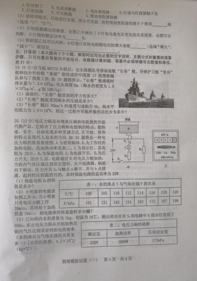 2018山东日照竖旗中学初中学业水平物理模拟试题一(图片版)(4)