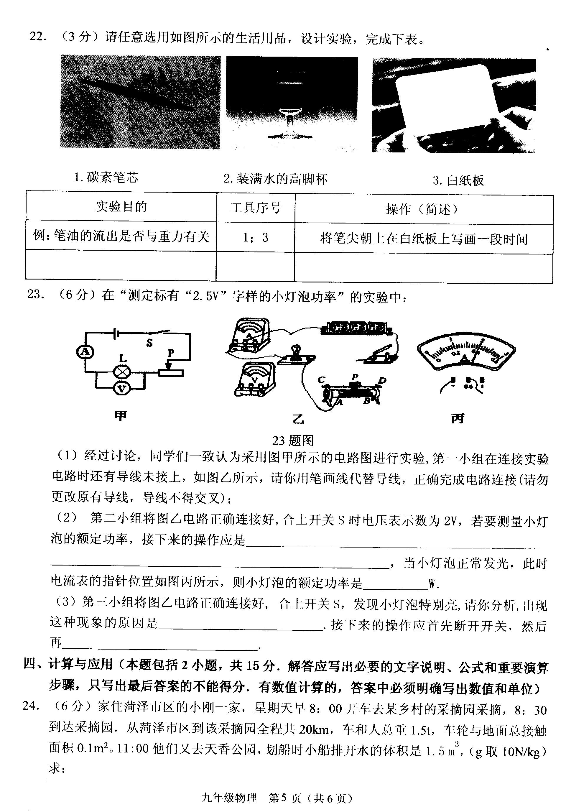 2018山东菏泽牡丹九年级中考模拟物理试题(图片版)(5)