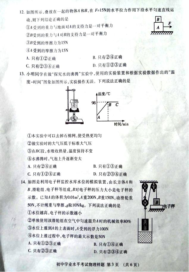 2018山东肥城初中学业水平考试(4月)物理试题(图片版)(3)