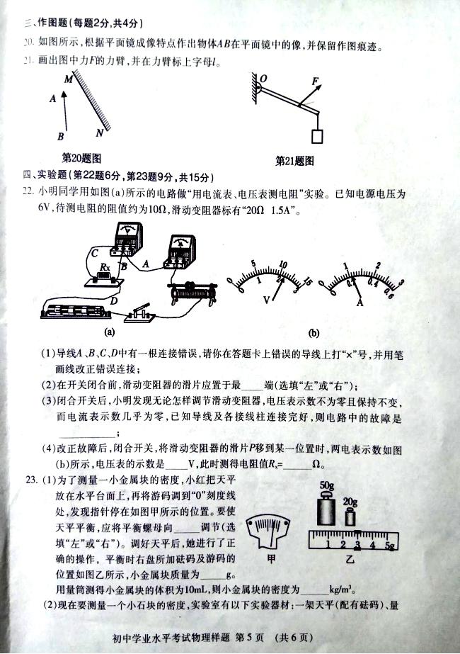 2018山东肥城初中学业水平考试(4月)物理试题(图片版)(5)