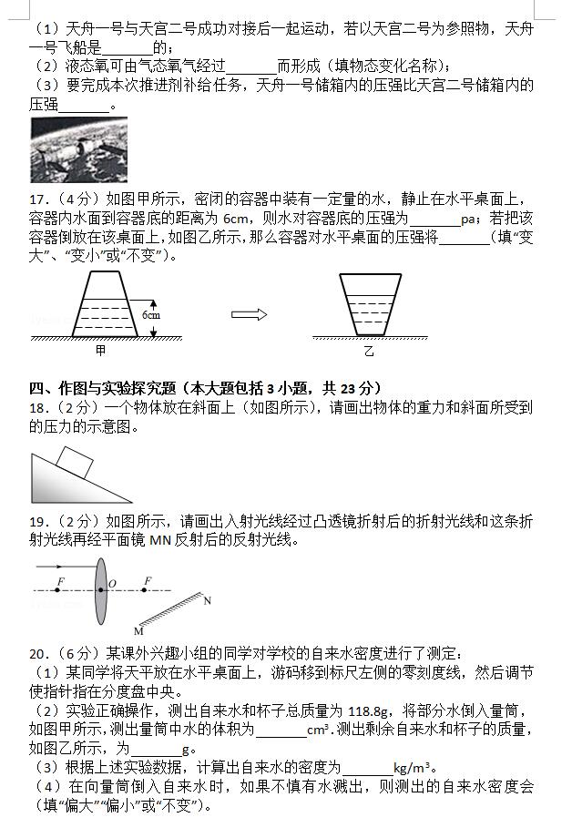2018山东日照莒县第三协作区中考物理模拟试卷(图片版)(5)