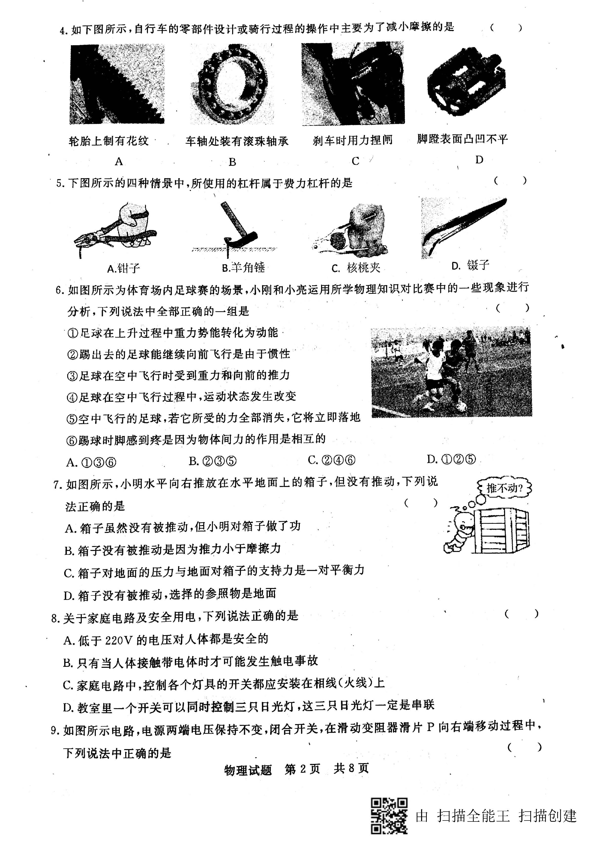 2018山东东昌府九年级一模物理试题(图片版)(2)