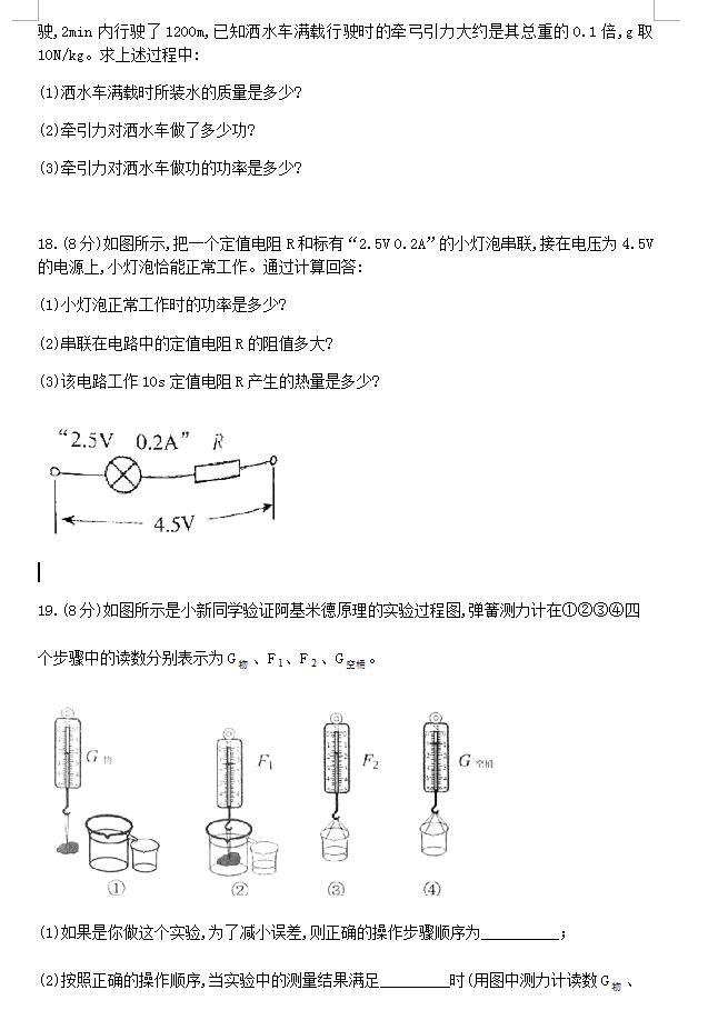 2018山东济南槐荫九年级下阶段性测试物理试题(图片版)(6)