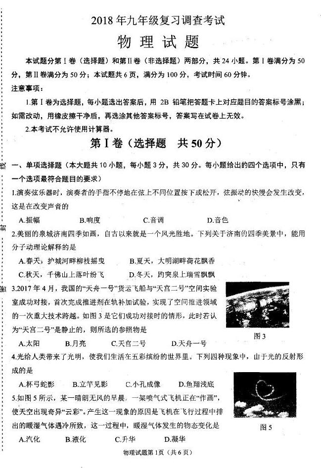 2018山东济南天桥九年级复习调查物理试题(图片版)如下: