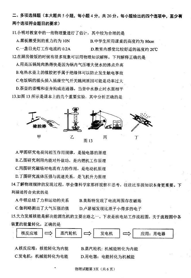 2018山东济南天桥九年级复习调查物理试题(图片版)(3)